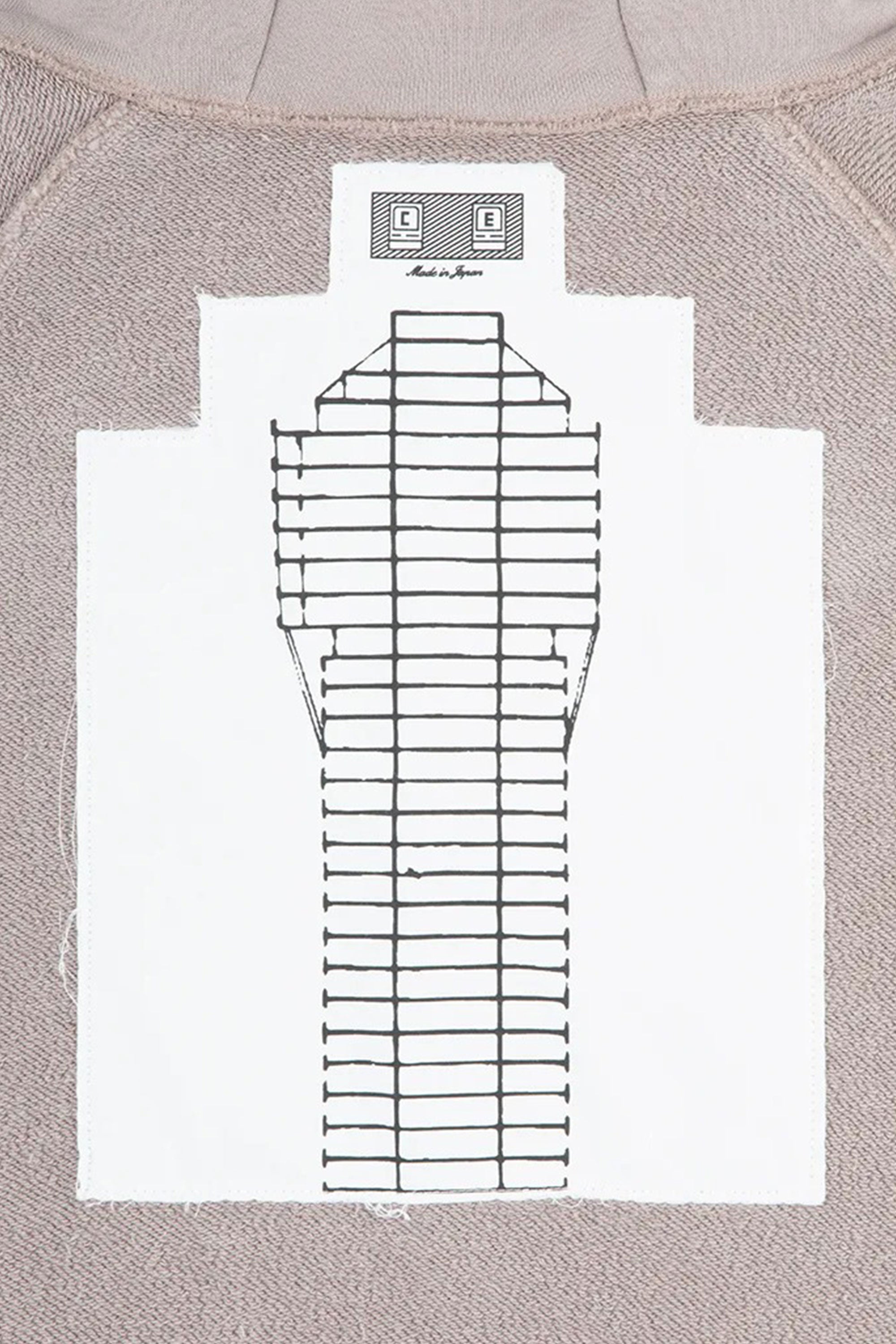100% cotton. Zip-up. Concealed zipper teeth. Raglan sleeves. Fabric patch on the inside of the back. Reflective print on the outside of the back. Silicone patch on the upper left sleeve. Welt pockets on the front. Drawstring hood. Wide silhouette. Washed finish. Available in two colours: beige and blue. Made in Japan.