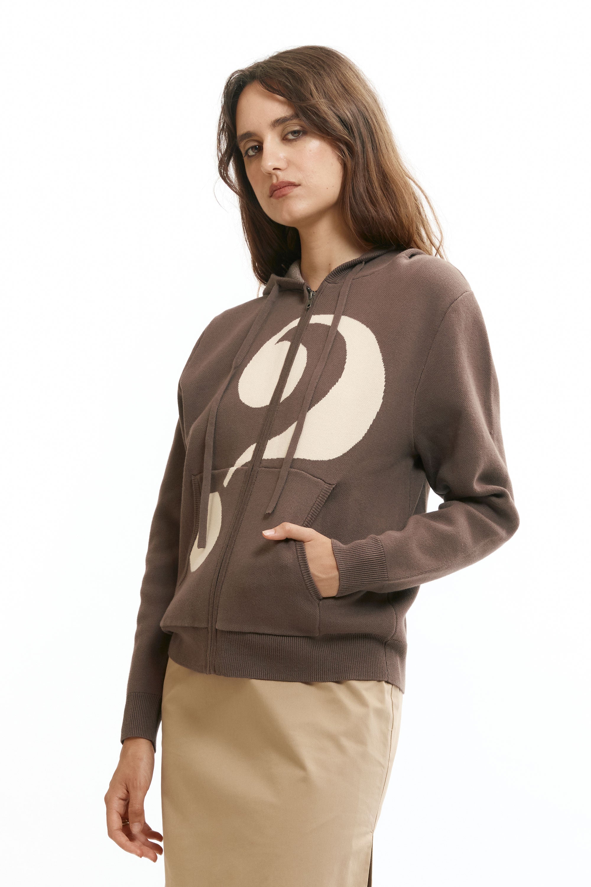 Question Mark Knit Zip Up Hoodie