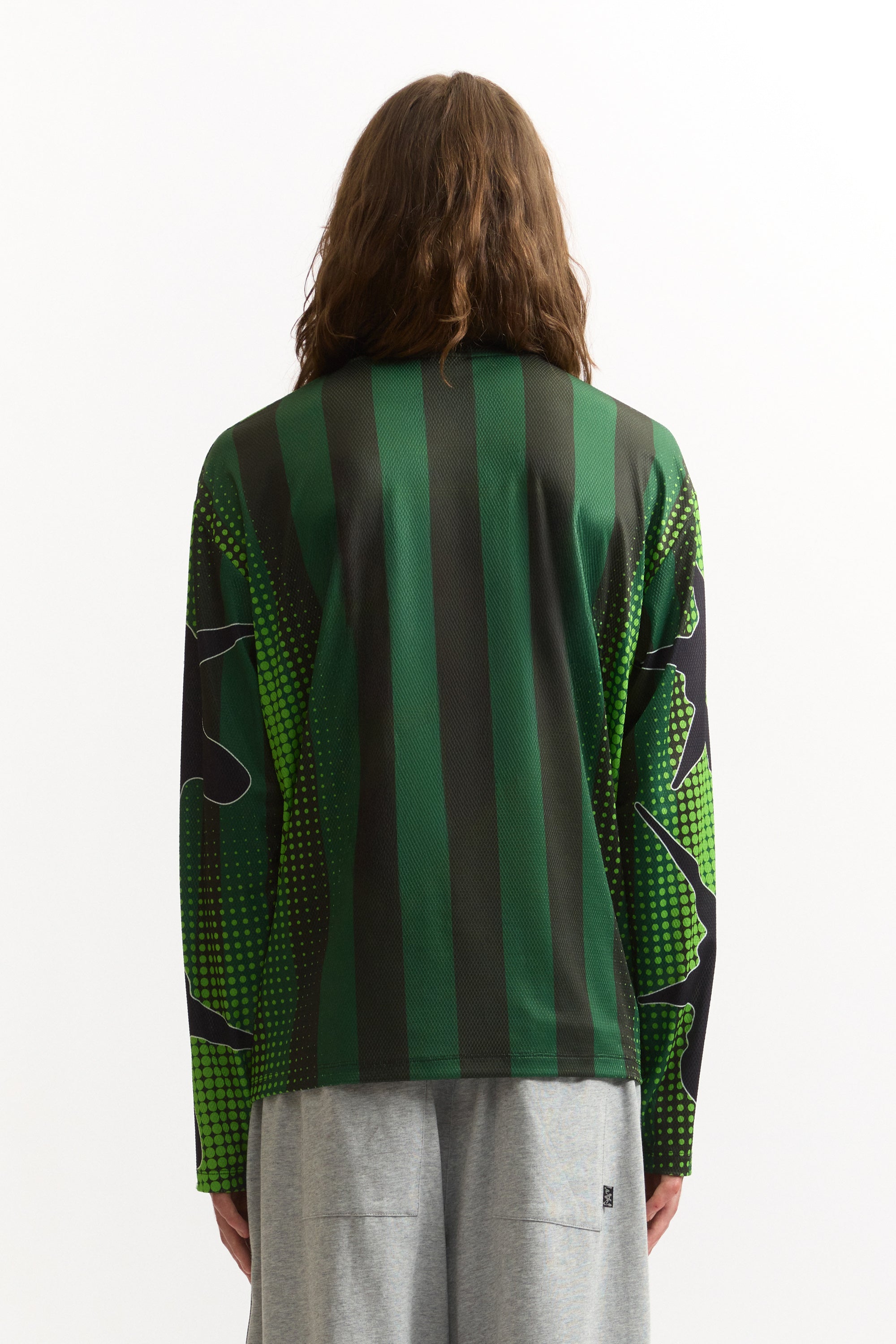 - Single layer mesh long sleeve top.