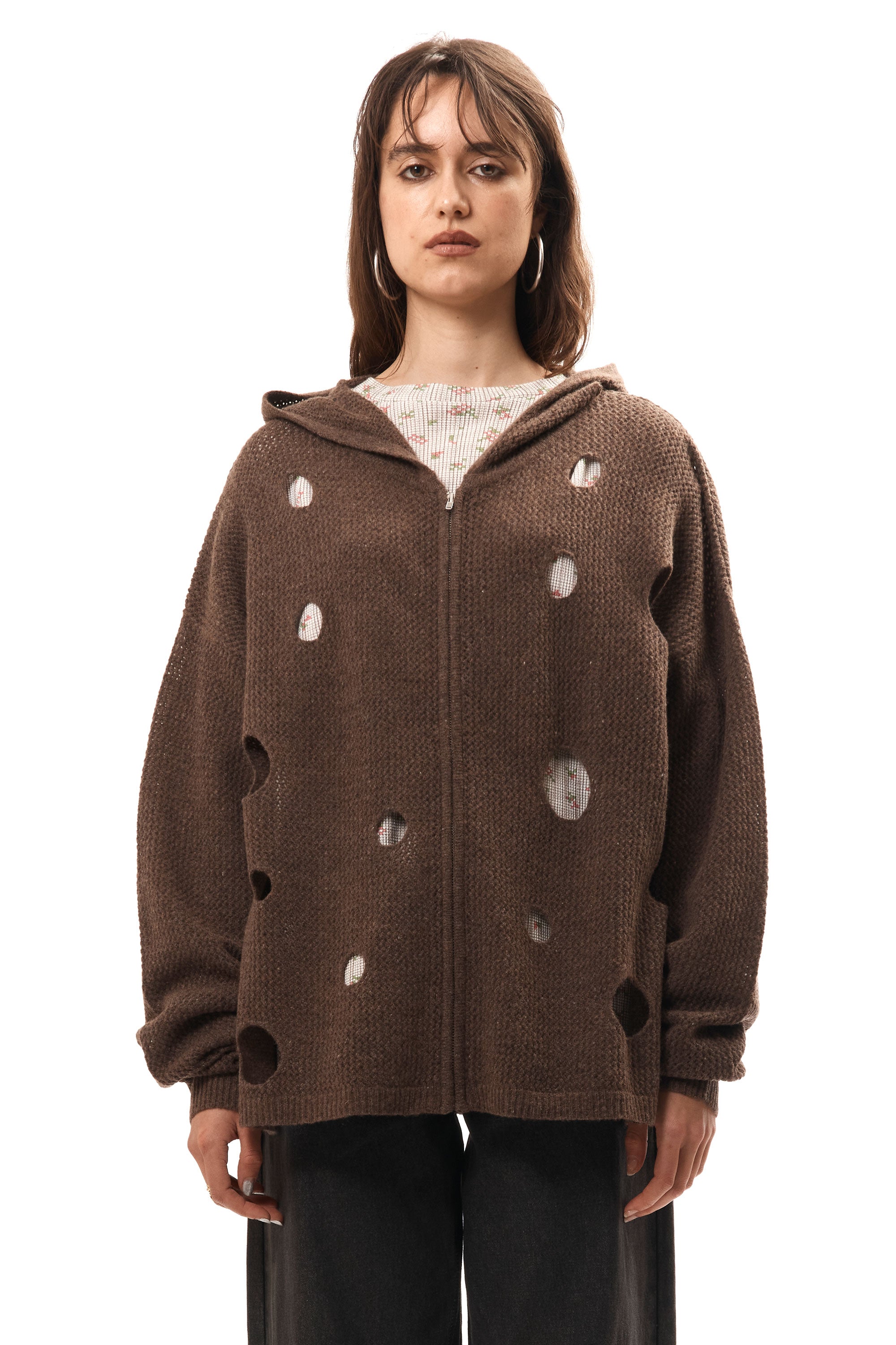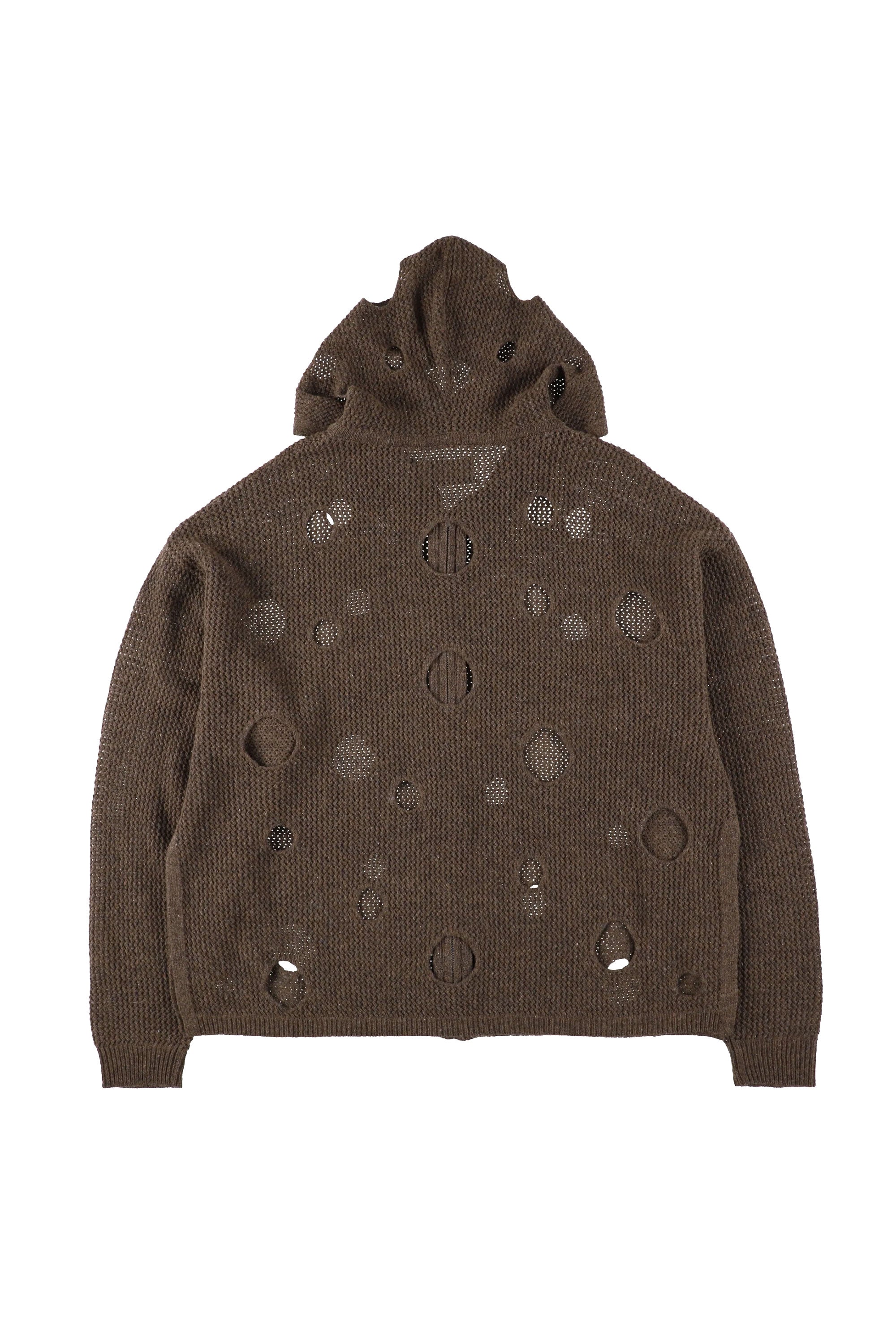 HOLE KNIT ZIP HOODIE BROWN